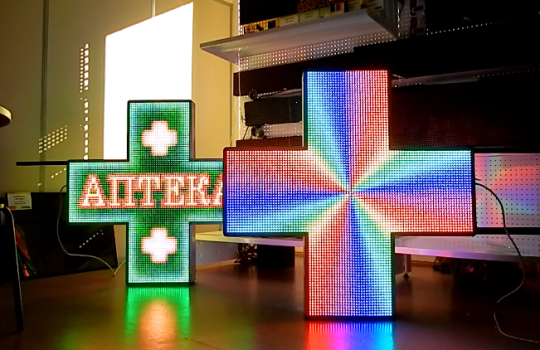 Как видим, существует большое количество аптечных крестов, которые используются для навигации и привлечения внимания к аптеке. Вместе с тем, в настоящее время особую популярность завоёвывают диджитал-аптечные кресты, состоящие из светодиодных панелей. Полагаем, что будущее за данными рекламными конструкциями.