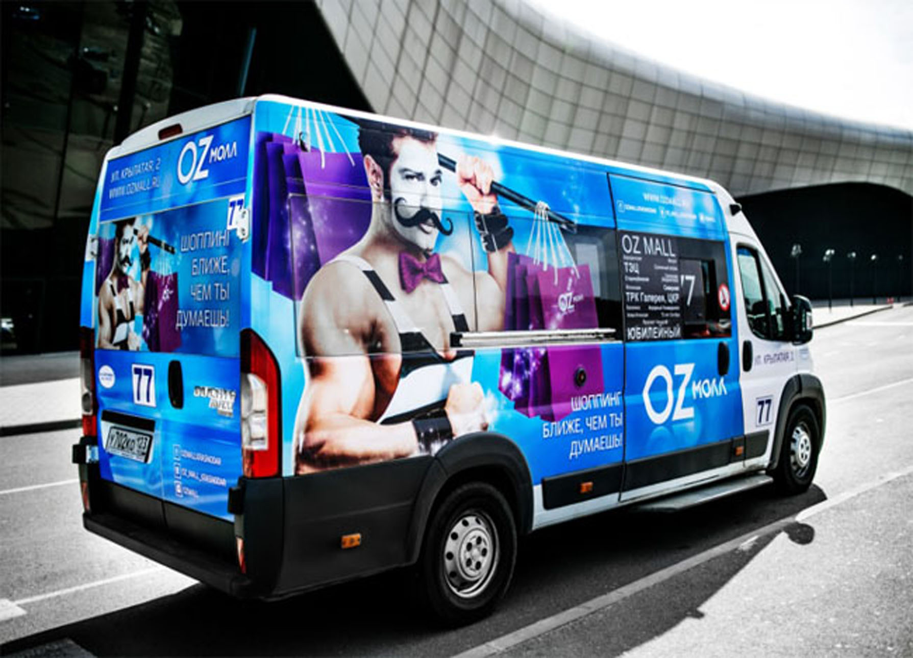 3) процесс брендирования (оклейки) маршрутки рекламой: