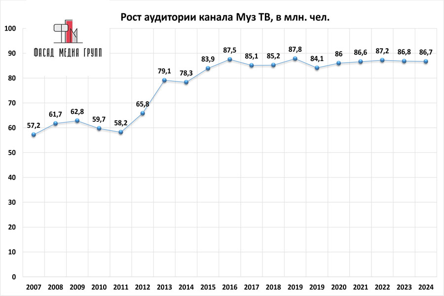 Показатели аудитории «МУЗ-ТВ» по России: