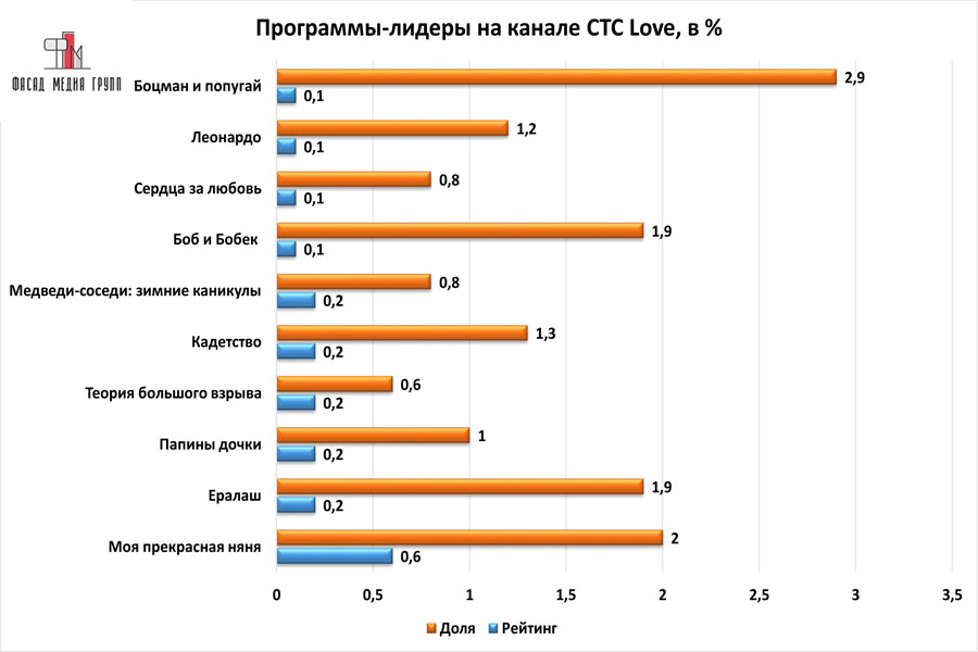 Популярность телеэфира на «СТС Love» приводит к ежегодному увеличению спроса на рекламное время. Для привлечения клиентов из разных регионов России, увеличения процента продаж, повышения имиджа компании и узнаваемости бренда – размещайте рекламу на «СТС Love». «СТС Love» – это проверенный и востребованный канал для размещения рекламы на северском ТВ. Для размещения рекламы на телевидении обращайтесь в рекламное агентство «Фасад Медиа Групп». Будем рады сотрудничеству.