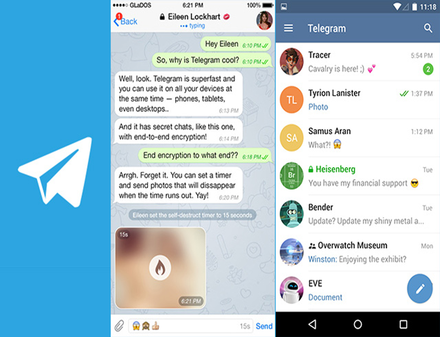В чатах можно устанавливать таймер для удаления фото или видео. Когда установленное время истечет, файл удалится для двух сторон. При этом, все нужные сообщения можно сохранять в отдельный диалог. Также туда можно загрузить неограниченное количество файлов, то есть мессенджер предоставляет бесконечное облако. В 2019 году появилась возможность закреплять сообщения.