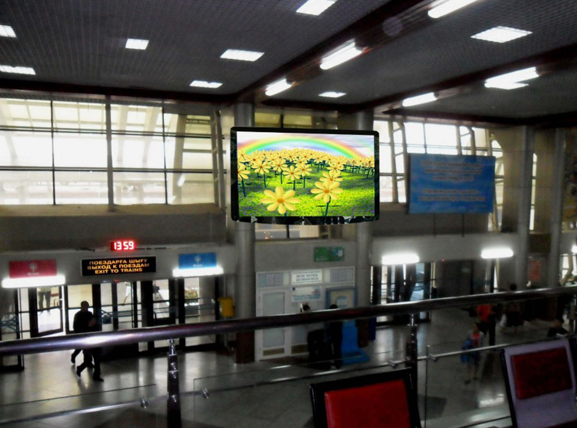 Пример рекламы на мониторе на автовокзале: