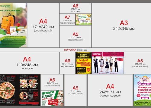 Дополнительно необходимо отметить, что формат рекламы в лифтах в Северске является одним из основных факторов, влияющих на стоимость. Так, рекламные листовки бывают различных форматов: А1, А2, А3, А4, А5, А6. Чем меньше формат, тем ниже цена. Вариативность форматов рекламы позволяет рекламодателям даже с небольшим бюджетом размещать рекламу в лифтах и сообщать населению о продаваемых товарах и оказываемых услугах.