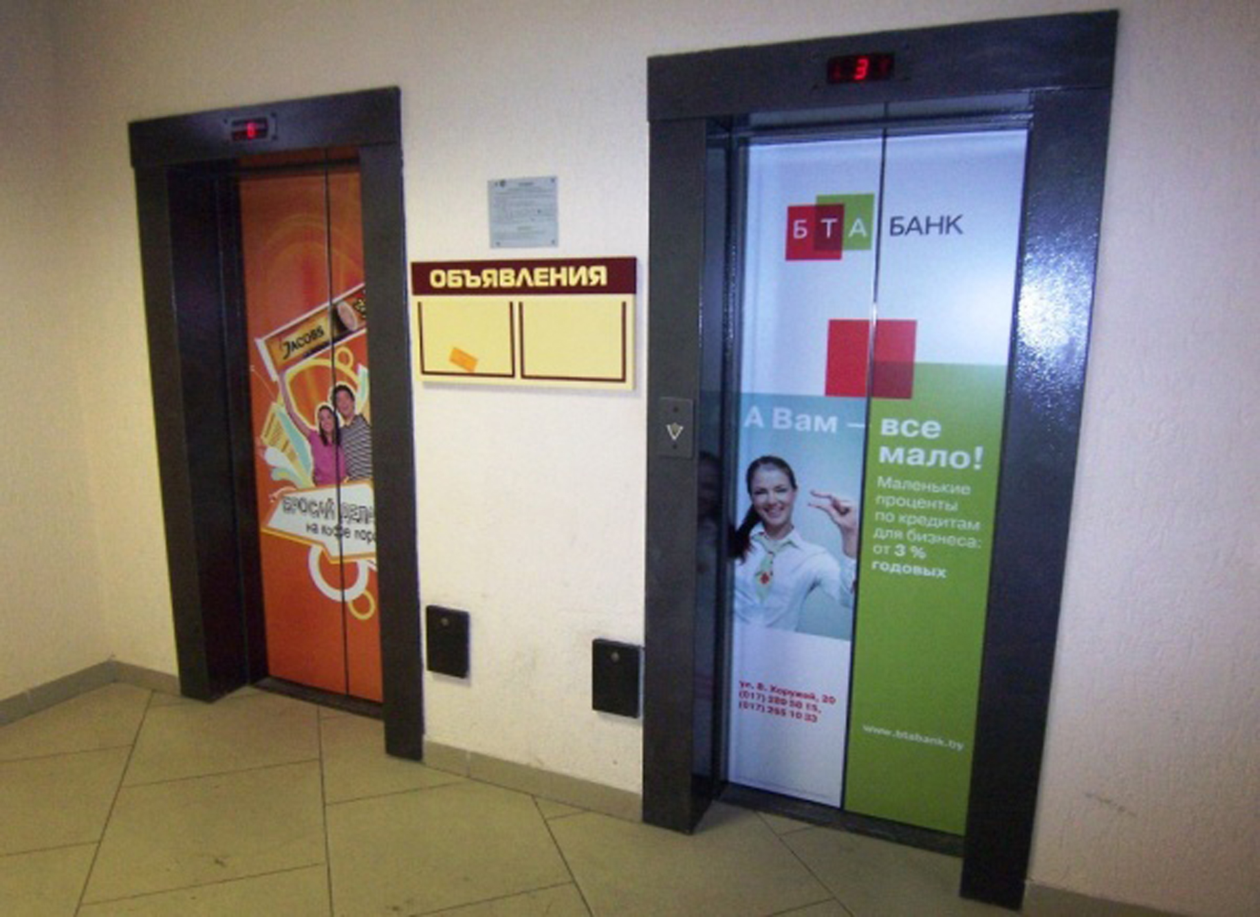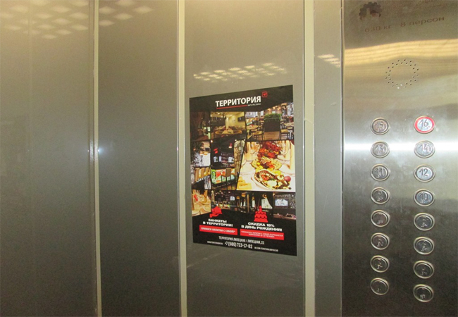 Примеры наших работ при размещении рекламы в лифтах представлены ниже: