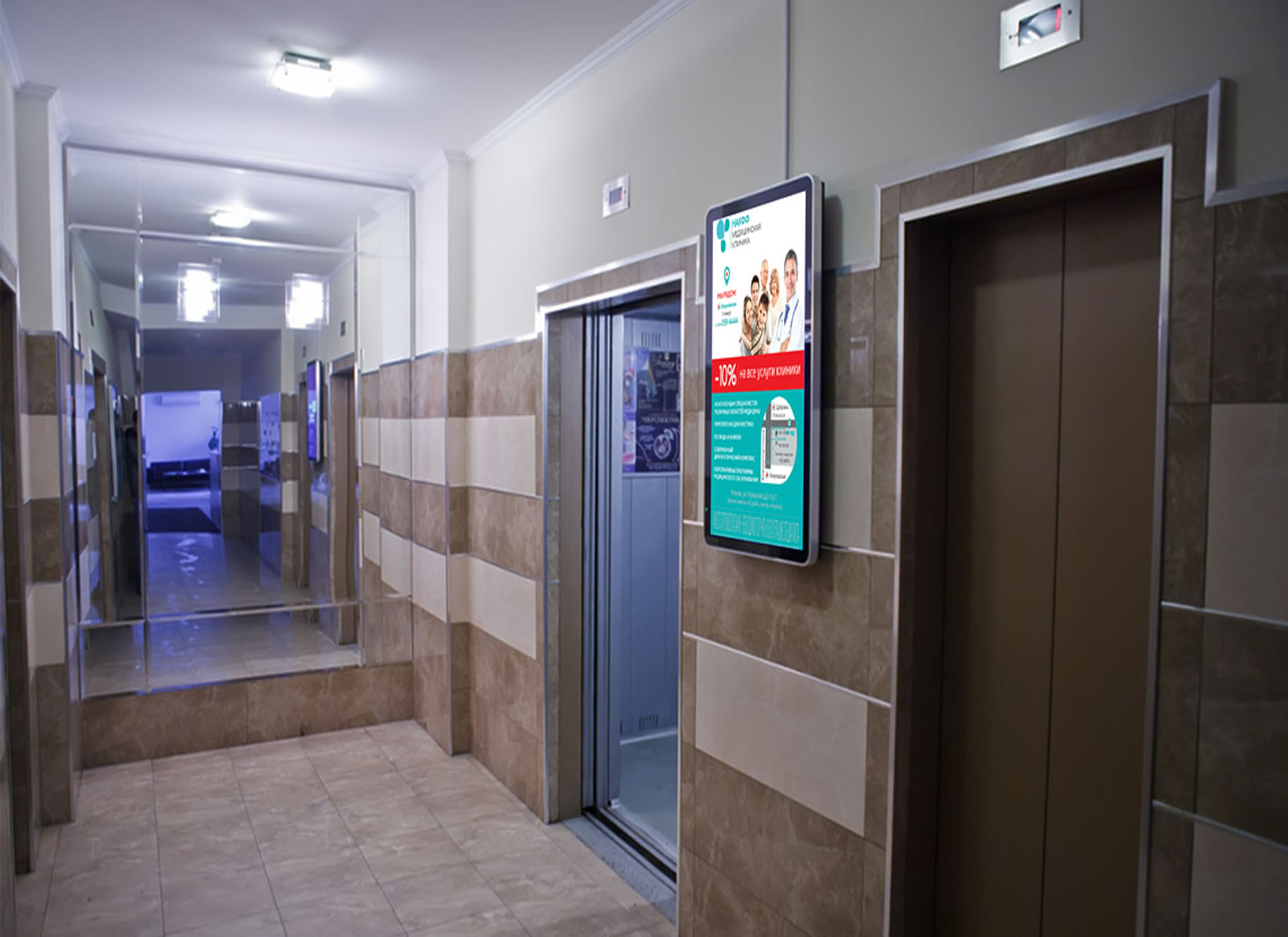 Напомним, что рекламу в лифтах в Северске можно разместить как в виде плаката, стикера, оклейки дверей лифта, так запустить трансляцию рекламного ролика на мониторах.